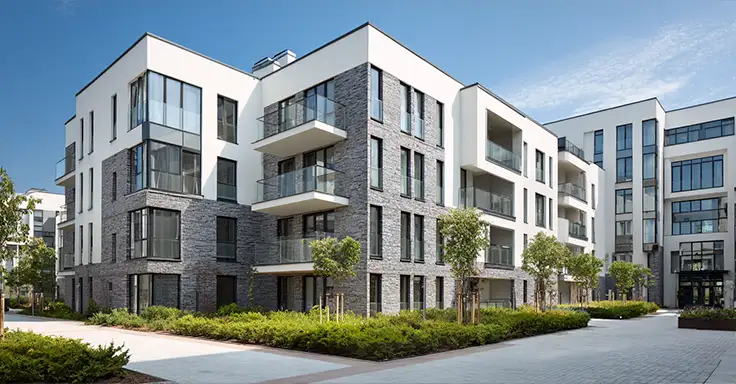 Modernes Mehrfamilienhaus mit Balkonen und Garten