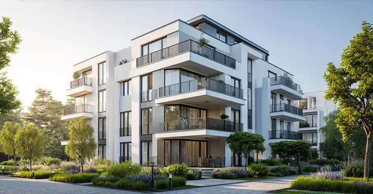 Modernes Mehrfamilienhaus mit Balkonen und Garten
